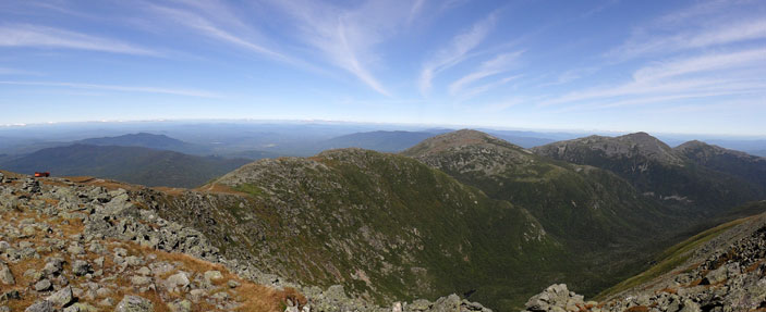Weather in the mountains can be volatile and significantly different than what’s forecasted for the lowlands. To dress/pack accordingly, plan to lose about three degrees in temperature for every thousand feet gained, but also review the National Weather Service’s high-elevation report and the Mount Washington Observatory’s Higher Summits Forecast. In addition to precipitation and wind reports, pay close attention to the chances of thunderstorms.