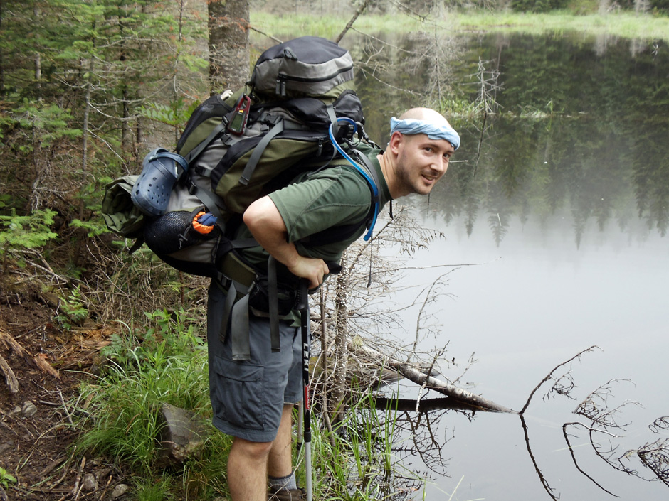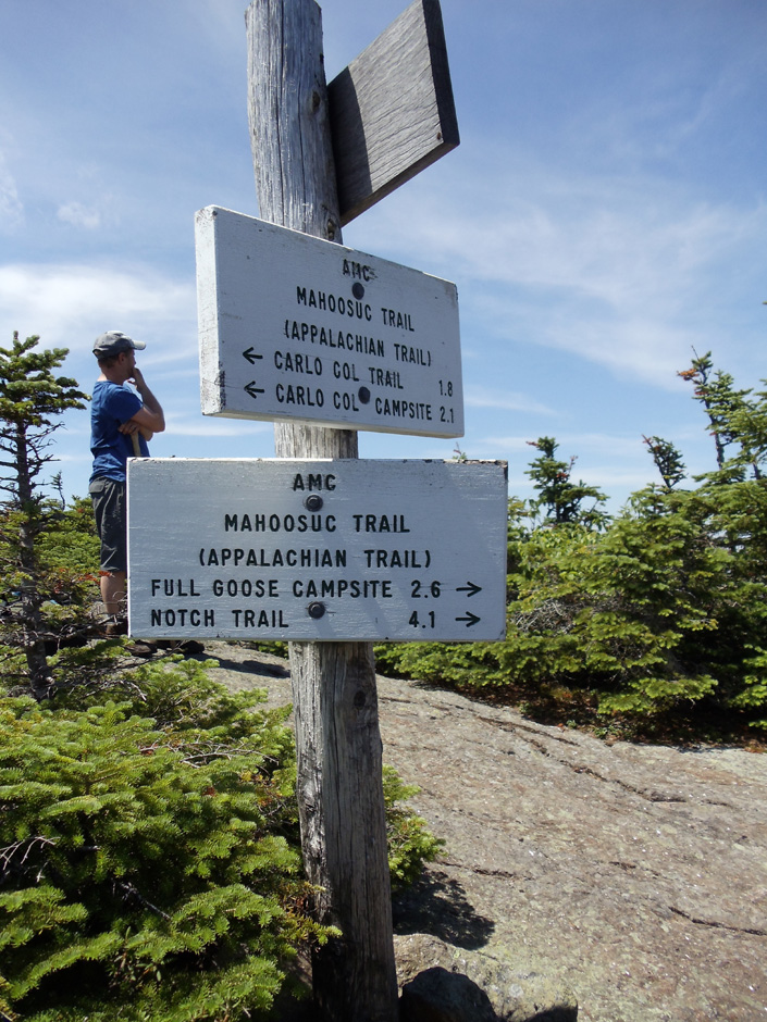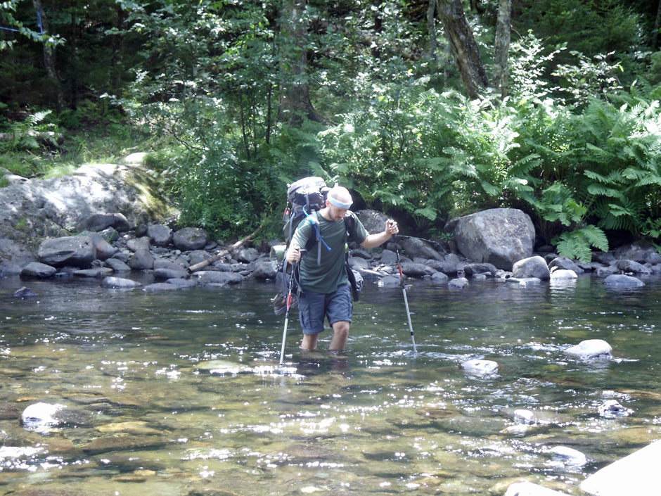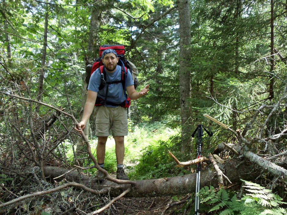 The sun was set to bake and the air swamped with humidity. Our upper bodies listed forward beneath the weight of 40-pound packs. With every muscle in our legs, back, and shoulders begging for mercy, one of us had the audacity to ask if we were there yet. It was our first day on “the trail” and we were nearing the West Peak of Goose Eye Mountain, the second of four 3,500-plus foot summits on the day’s docket, when we encountered a squat, bulldog of a man and his two teenage sons descending a steep rock face.