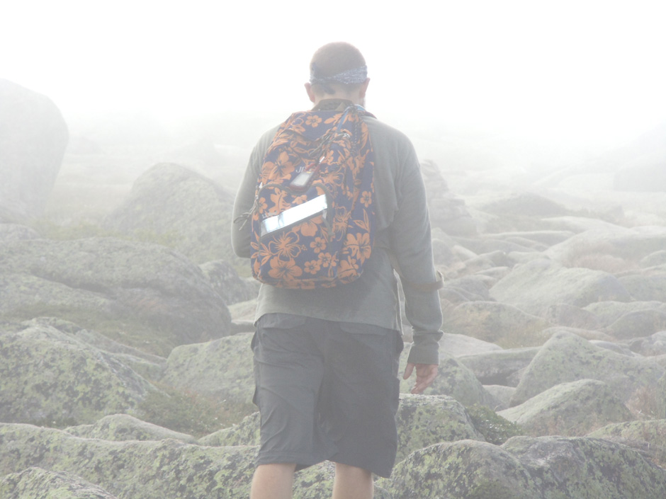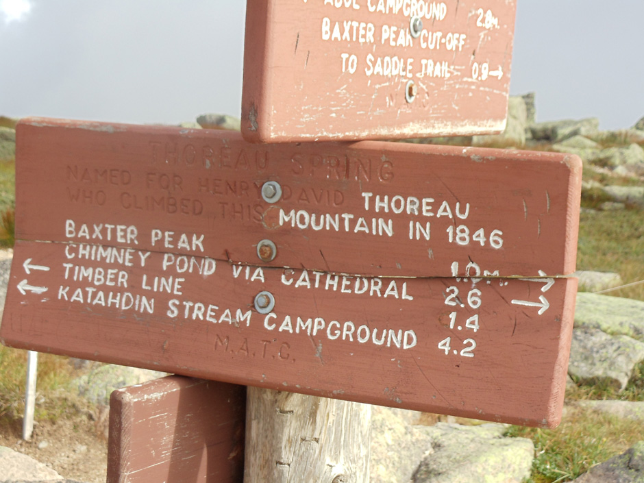All trail nostalgia ended at the “Gateway,” entry point to Katahdin’s mystical tableland. The wind granted us a brief reprieve as we were suddenly enshrouded in a passing cloud, seemingly entering the great unknown. There were numerous signs asking hikers to respect the rare and fragile alpine vegetation, and if there was any doubt, the trickling Thoreau spring was a gentle reminder that we were upon a special place in the heart of Maine.