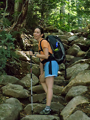 Roughly a half mile after the Flume Slide Trail split the Liberty Springs Trail crosses Spring Brook—a fairly pedestrian rock hop in most seasons, it’s possible that your boots might be getting wet in early spring or after periods of sustained rainfall. The steep bank on the far side of the brook signifies that the kiddie hike is over and the real climbing is about to begin. Take your Aleve if you’ve got ’em, because from here on out the trail sneers at any notion of switch backing, presenting a steep and continuous rock staircase climb for nearly two miles.
